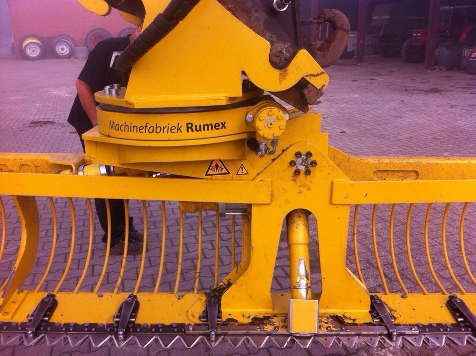 De lage opbouw van de korfdrager is nog een uniek kenmerk, waardoor er korter bij het voertuig kan worden gelost. De korf laat zich makkelijker door een nauwe sloot bewegen. Door de speciale stand van het mes knipt de Rumex maaikorf progressief en door de uitgekiende stand van de drukkers slijten de messen aanzienlijk minder.