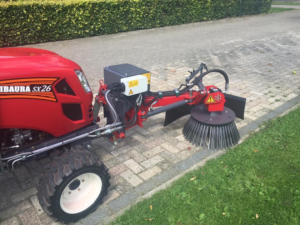 De borstel heeft een hydraulische links rechts verstelling, is hydraulisch geheven en hydraulisch aangestuurd vanaf een oliestroom van 18 liter per minuut bij 150 bar.