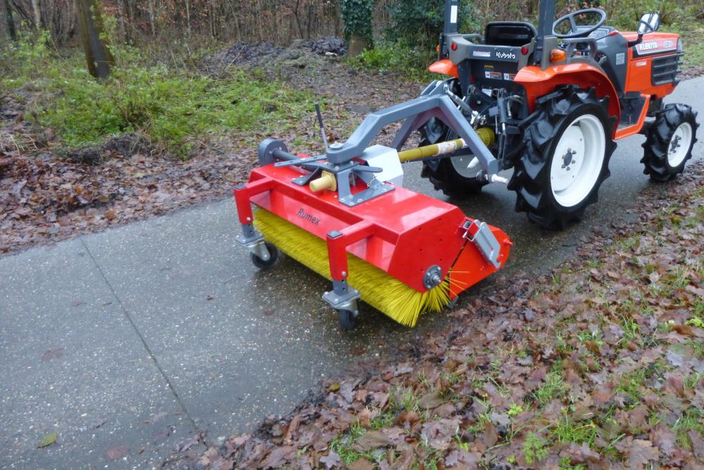 Rumex Pro Veegmachines type VM zijn standaard aftakas-aangedreven en voorzien van een zware zijdelingse kettingoverbrenging. De machines kunnen ook met een hydraulische aandrijving worden geleverd. Standaard zijn ze uitgerust met een 520 mm borstel en kunnen ze worden uitgevoerd met een robuuste, kiepbare opvangbank.