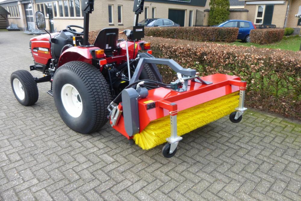 - Grote borstel met instelbare veeghoek en twee verstelbare steunwielen