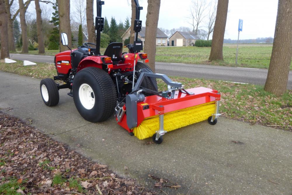 • Grote borstel met instelbare veeghoek en twee verstelbare steunwielen